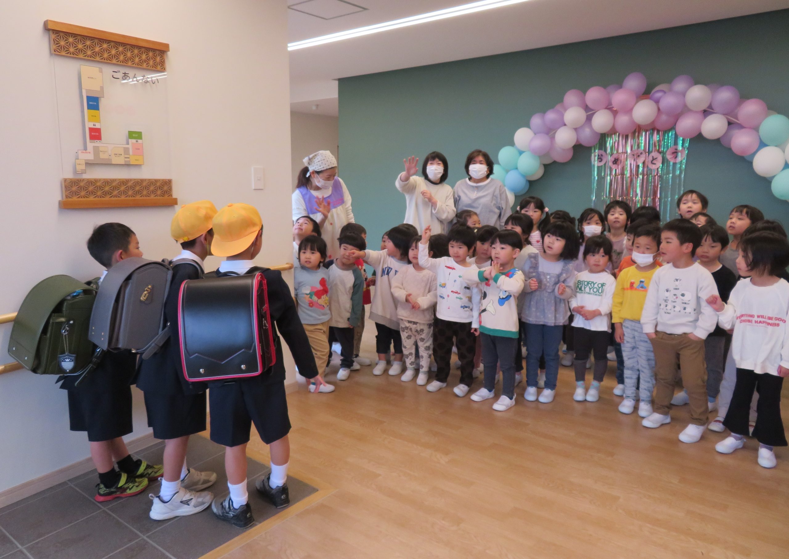 3月に卒園した子どもたちが小学校の入学式を終え、ランドセル姿を見せに来てくれました!