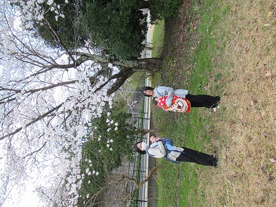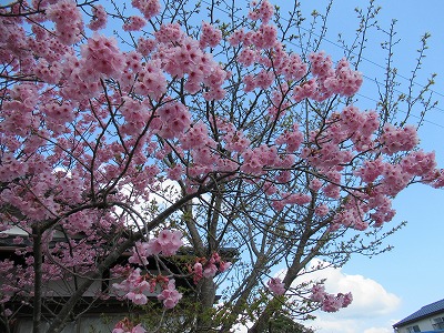 お花見散歩をしました。 --2025年4月9日 更新-- 本日は、お天気が良かったので、お散歩を楽しみながら、周辺の桜を見に行って来ました。満開間近の桜が青空に映え、とても美しかったです。 ピンク色の桜、今が見ごろでした。 高田町の公園の桜をバックに、撮りました。 小学校の校門の前で、「はいチーズ!」