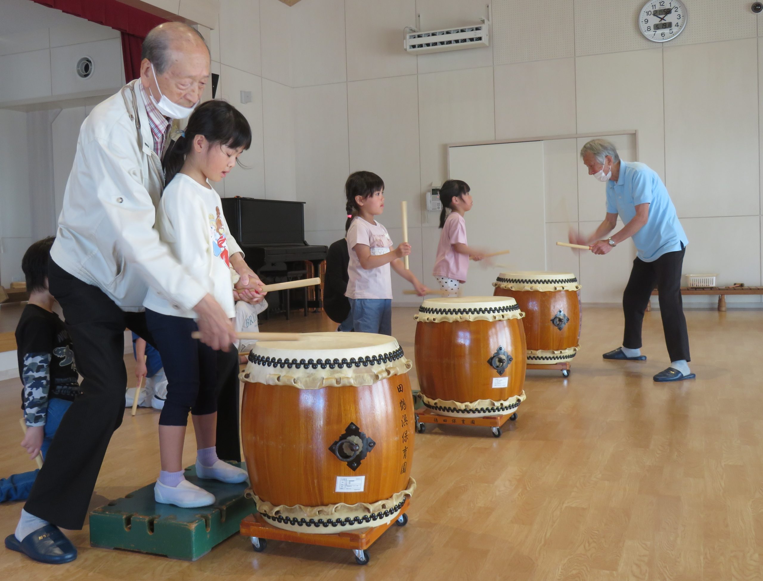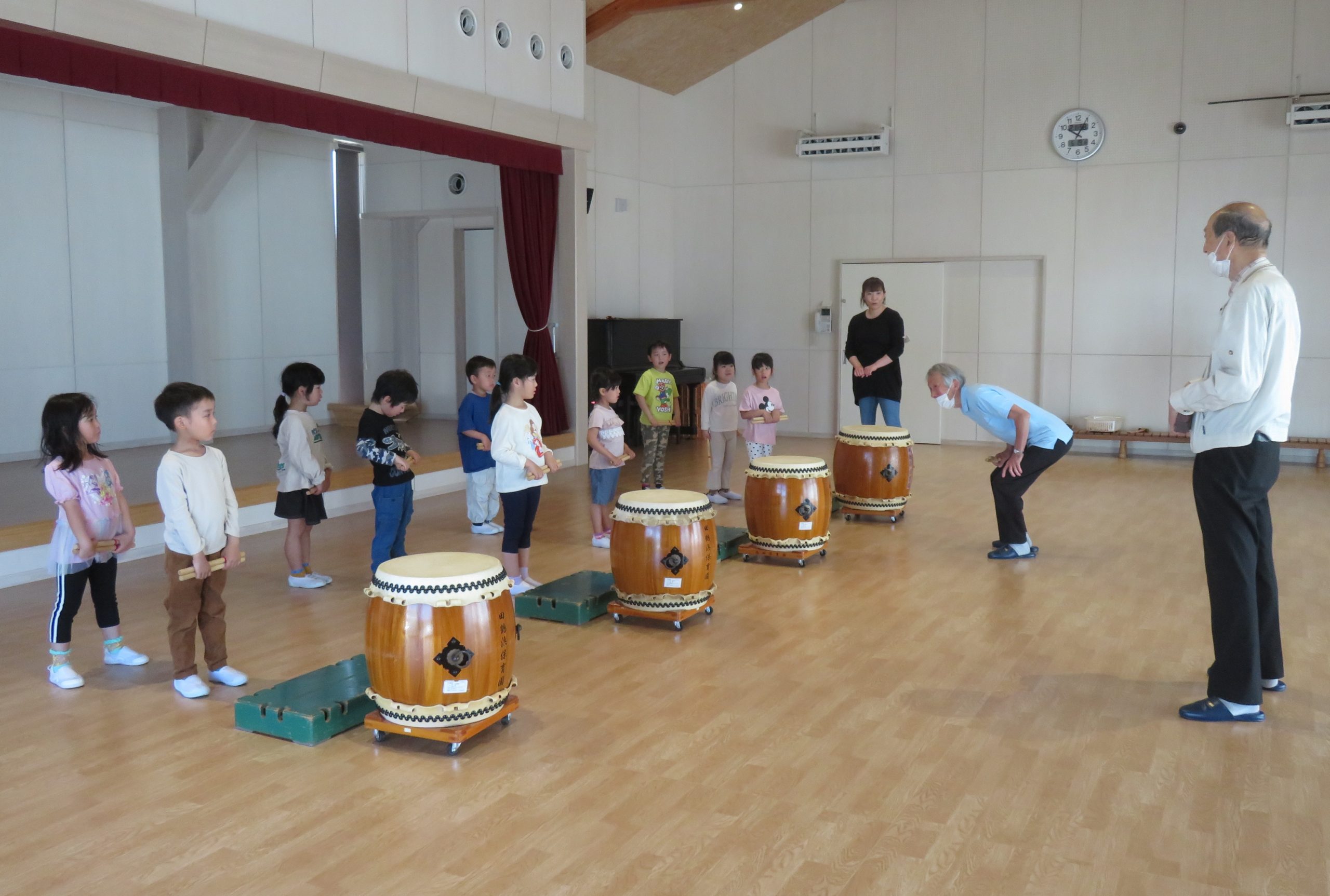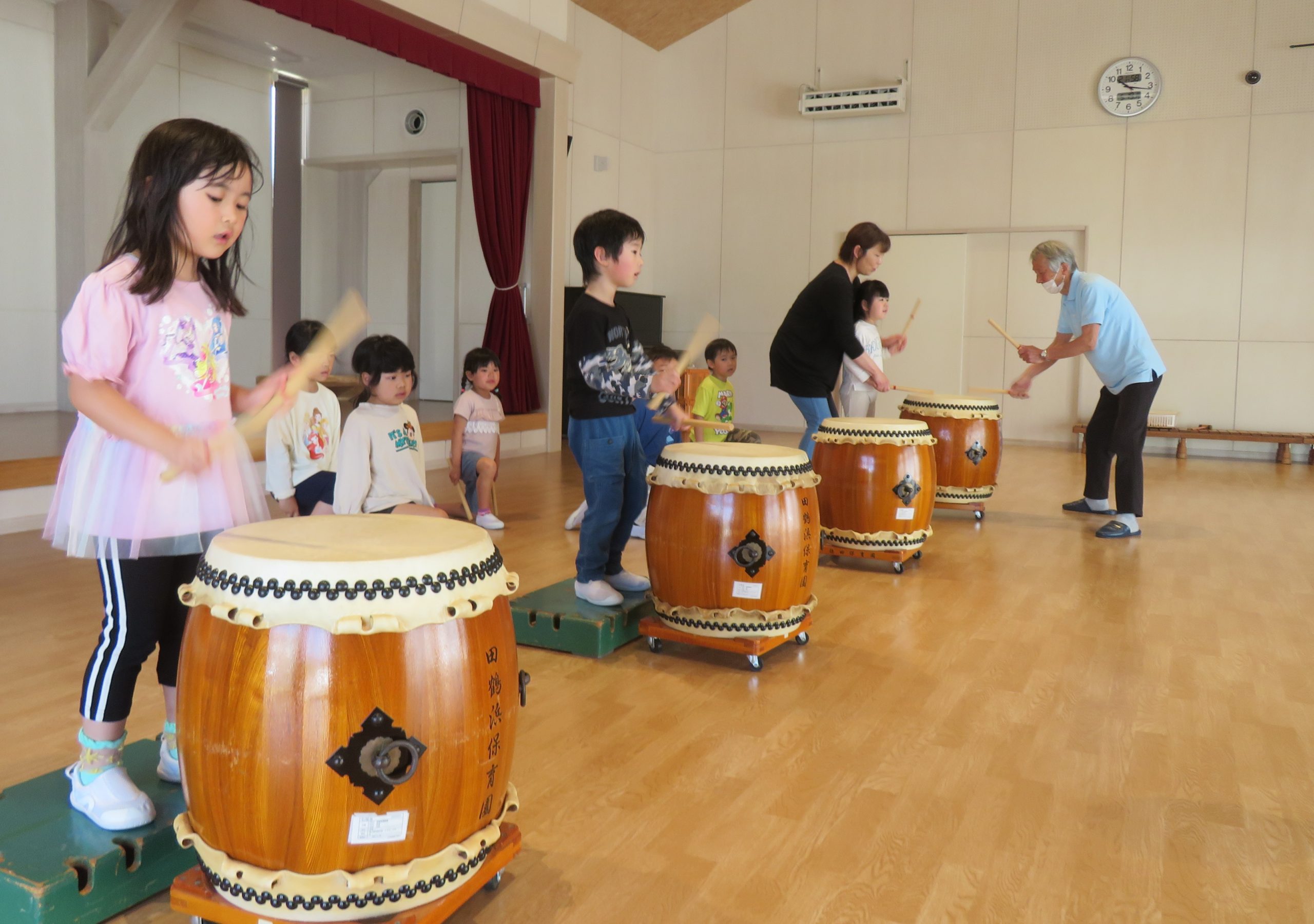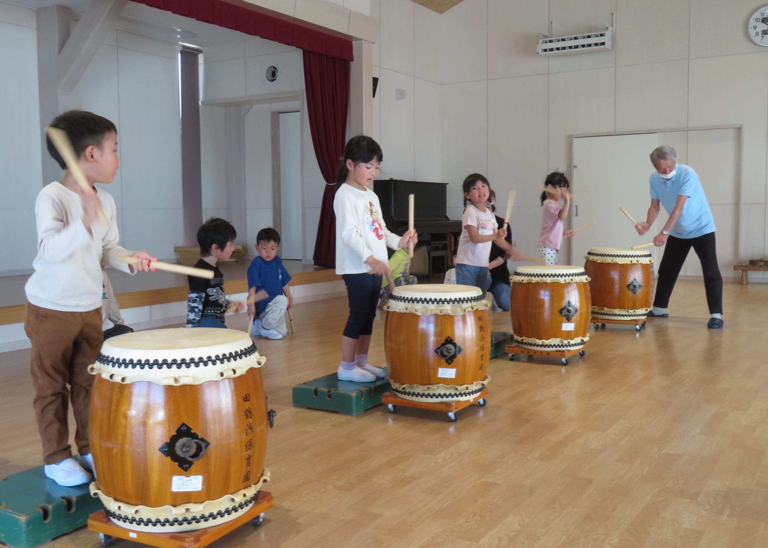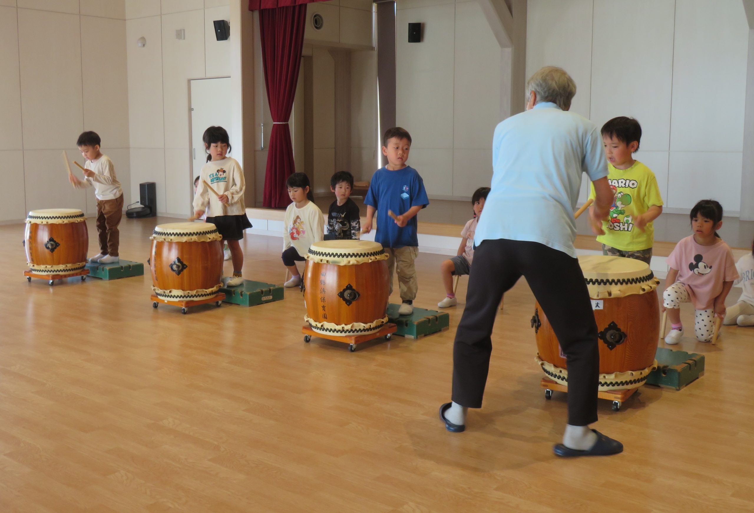 あおぐみさんが、地域の方に教えてもらい、太鼓の練習をしました!太鼓を打つのは久しぶりで少し戸惑っている姿も見られましたが、楽しんでいました!