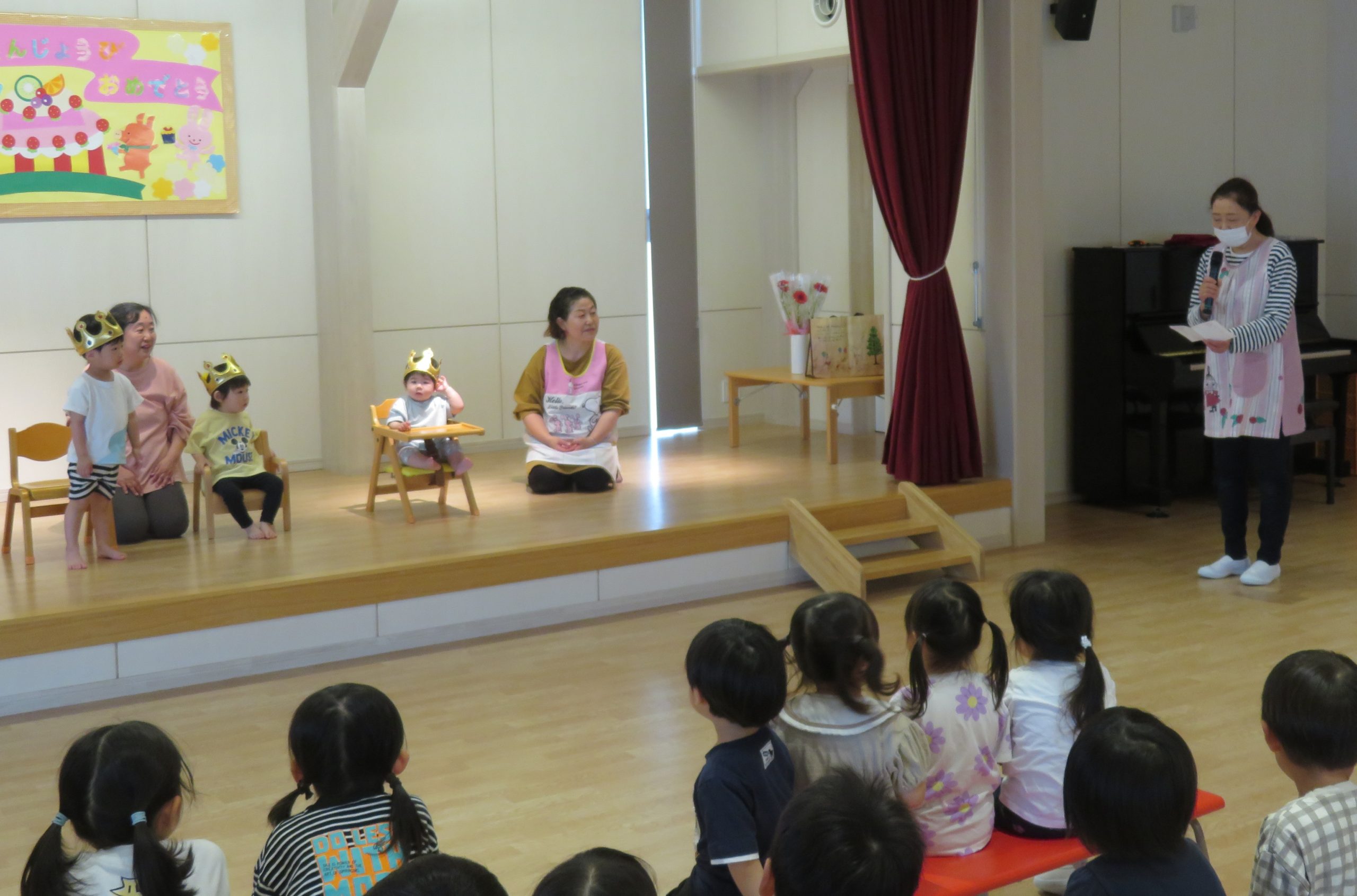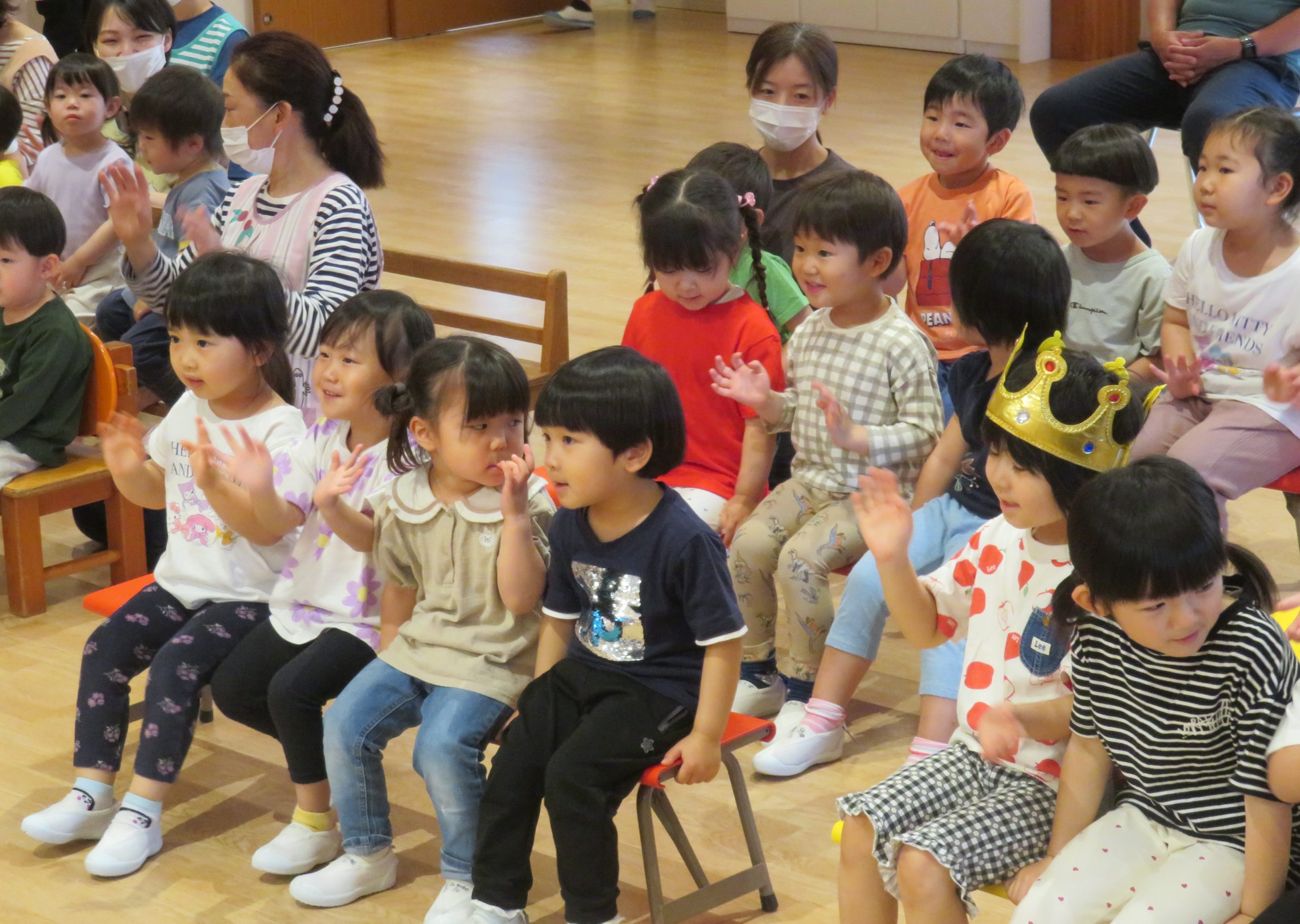 今日は、5月生まれのお友達のお誕生会をしました!お家の方やお友達にお祝いされて喜んでいました!!