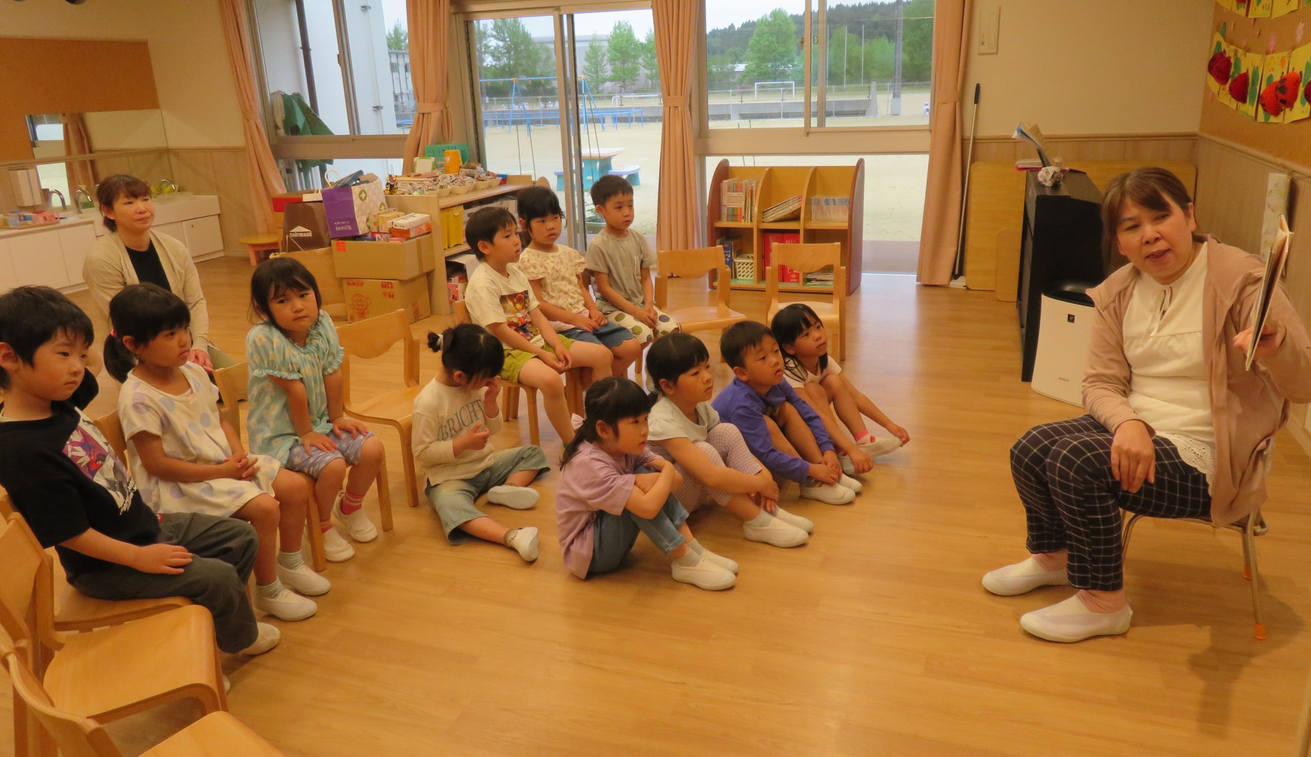 お仕事でママがこれなかったけれど、保育者が代読しているメッセージを真剣にきいていました!