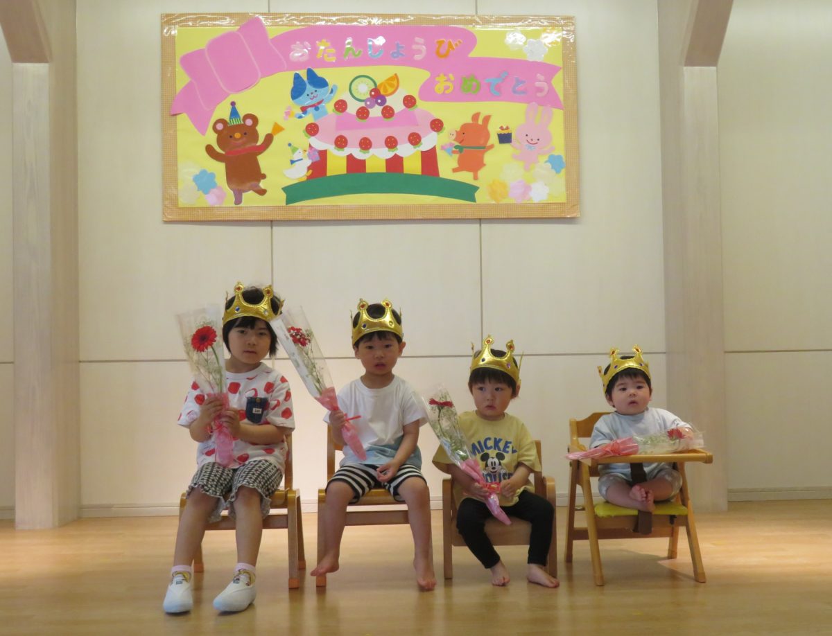 今日は、5月生まれのお友達のお誕生会をしました!お家の方やお友達にお祝いされて喜んでいました!!