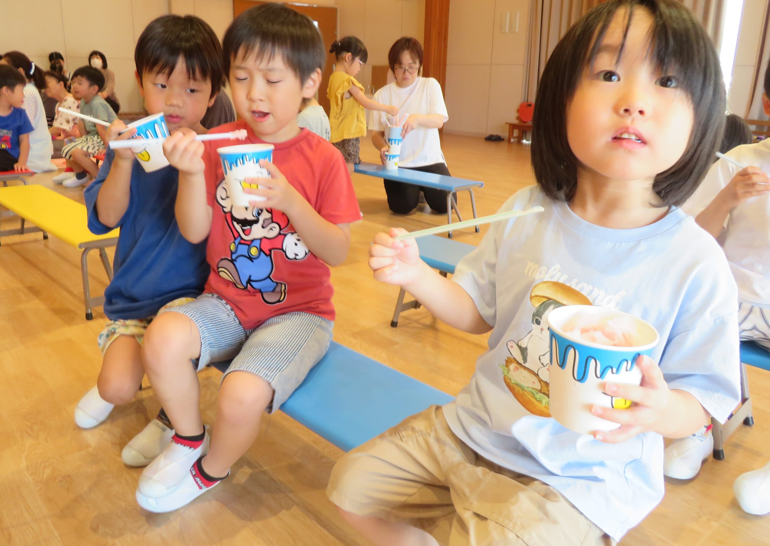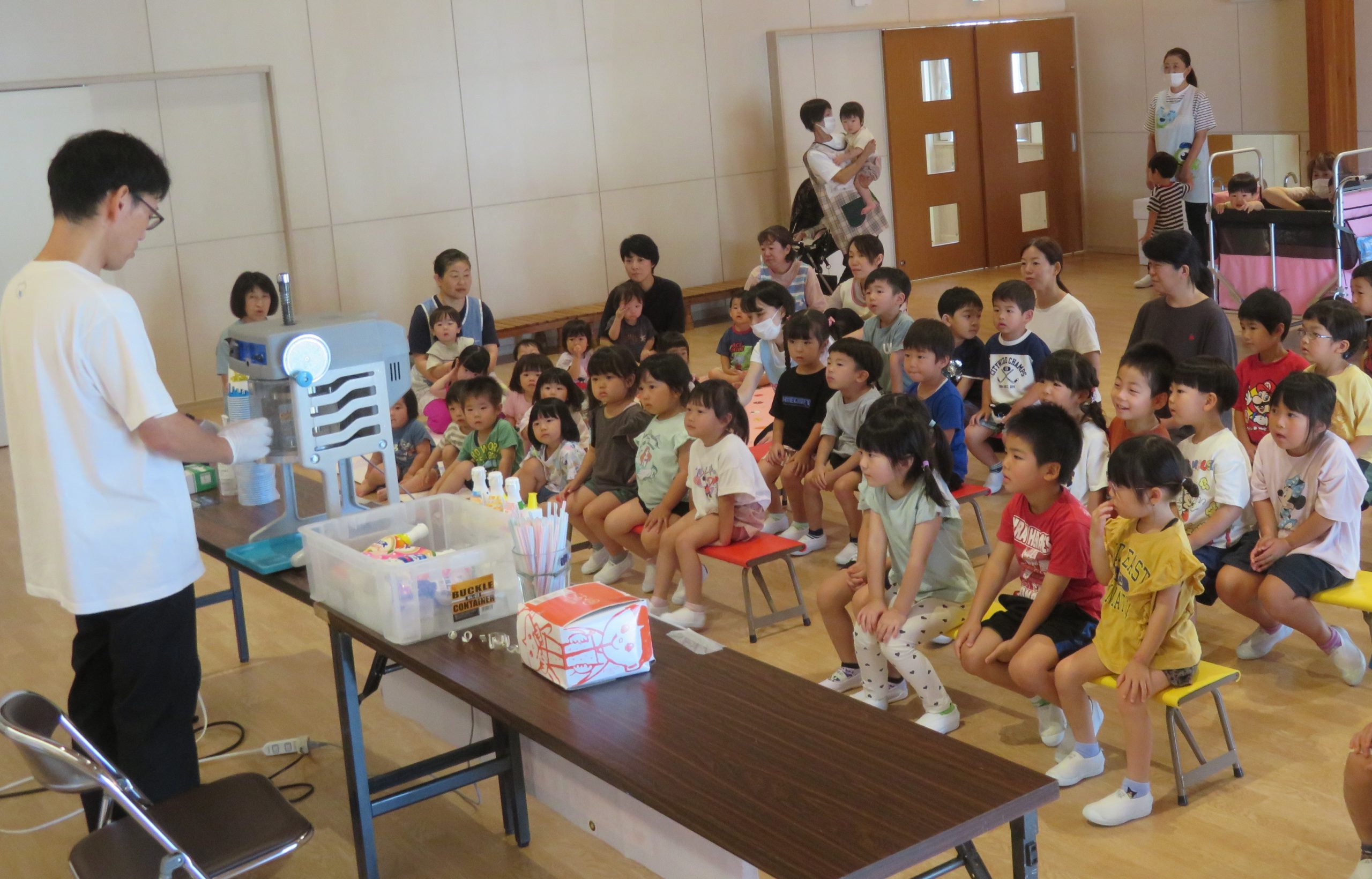 かき氷キャラバンの方が来て下さり、美味しいかき氷をみんなで食べました!また、シャボン玉飛ばし隊の方々がたくさんのシャボン玉を飛ばしてくれました。子どもたちは、楽しい1日を過ごしました!