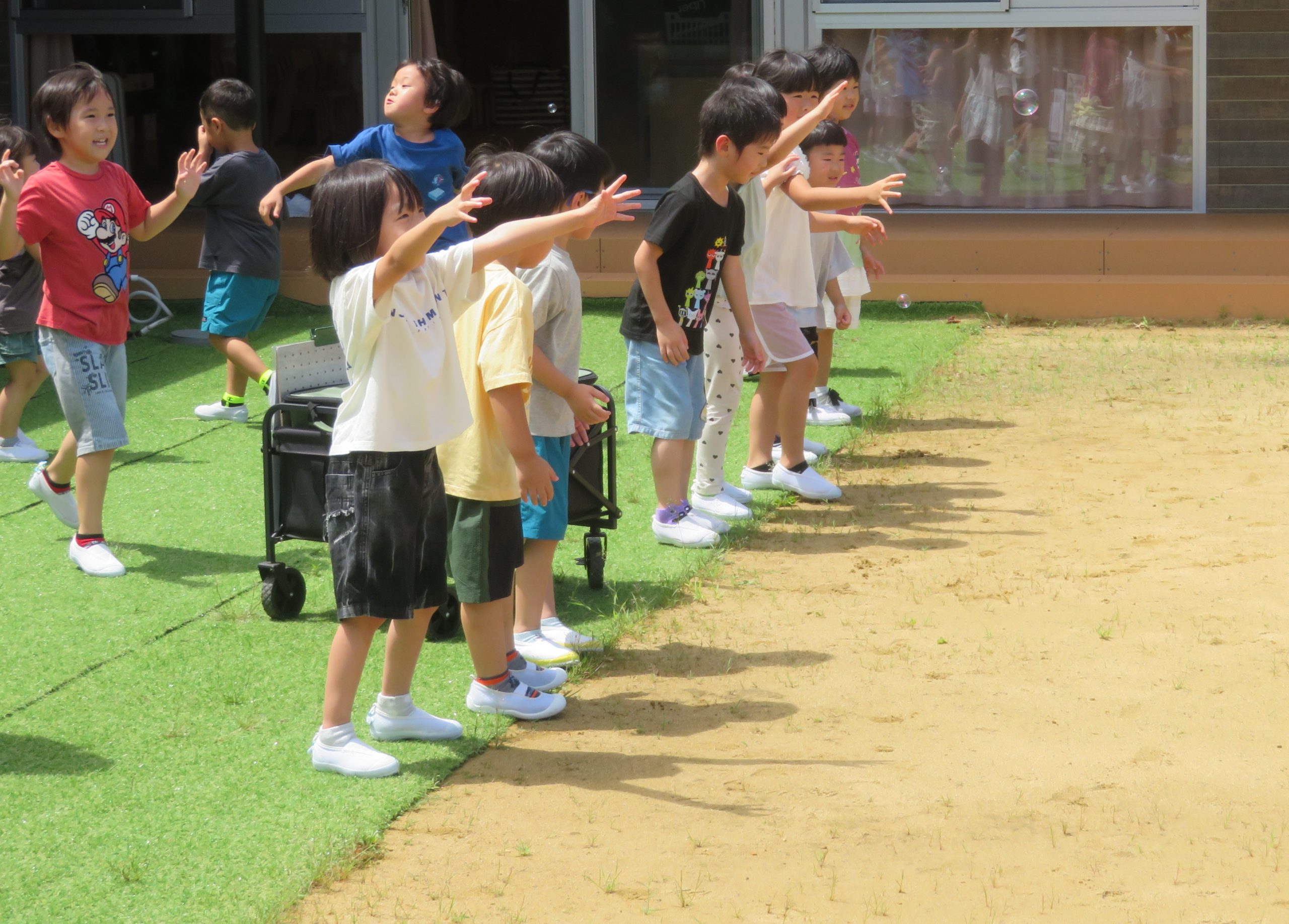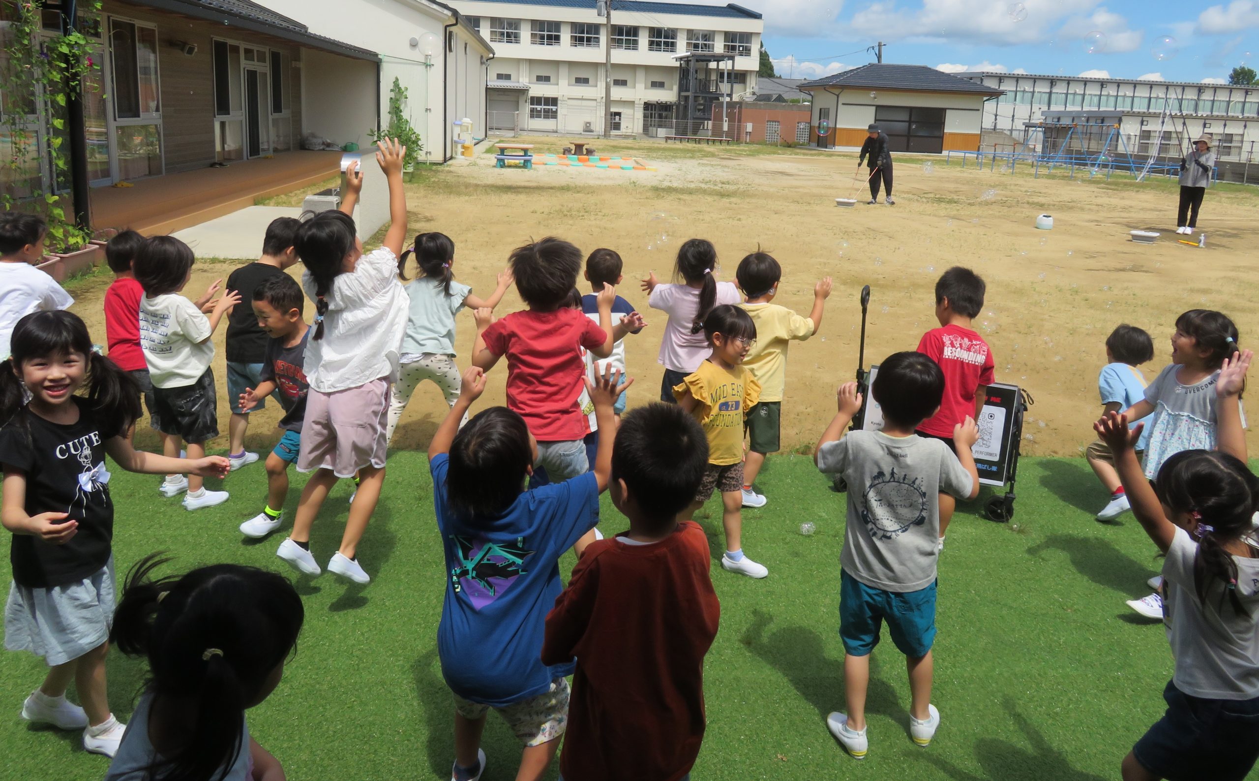 かき氷を食べた後は、たくさんのシャボン玉を見て、追いかけて楽しみました!