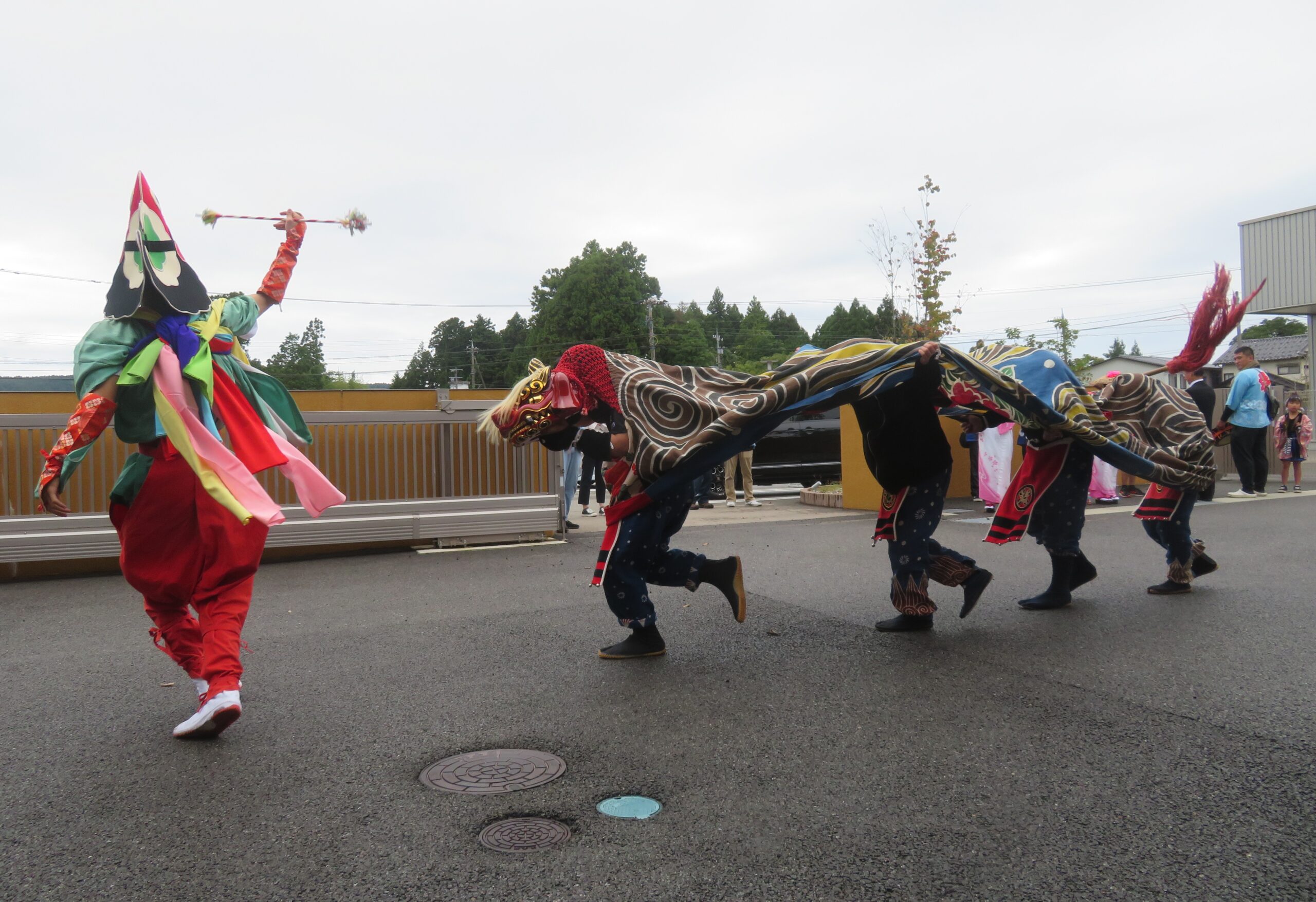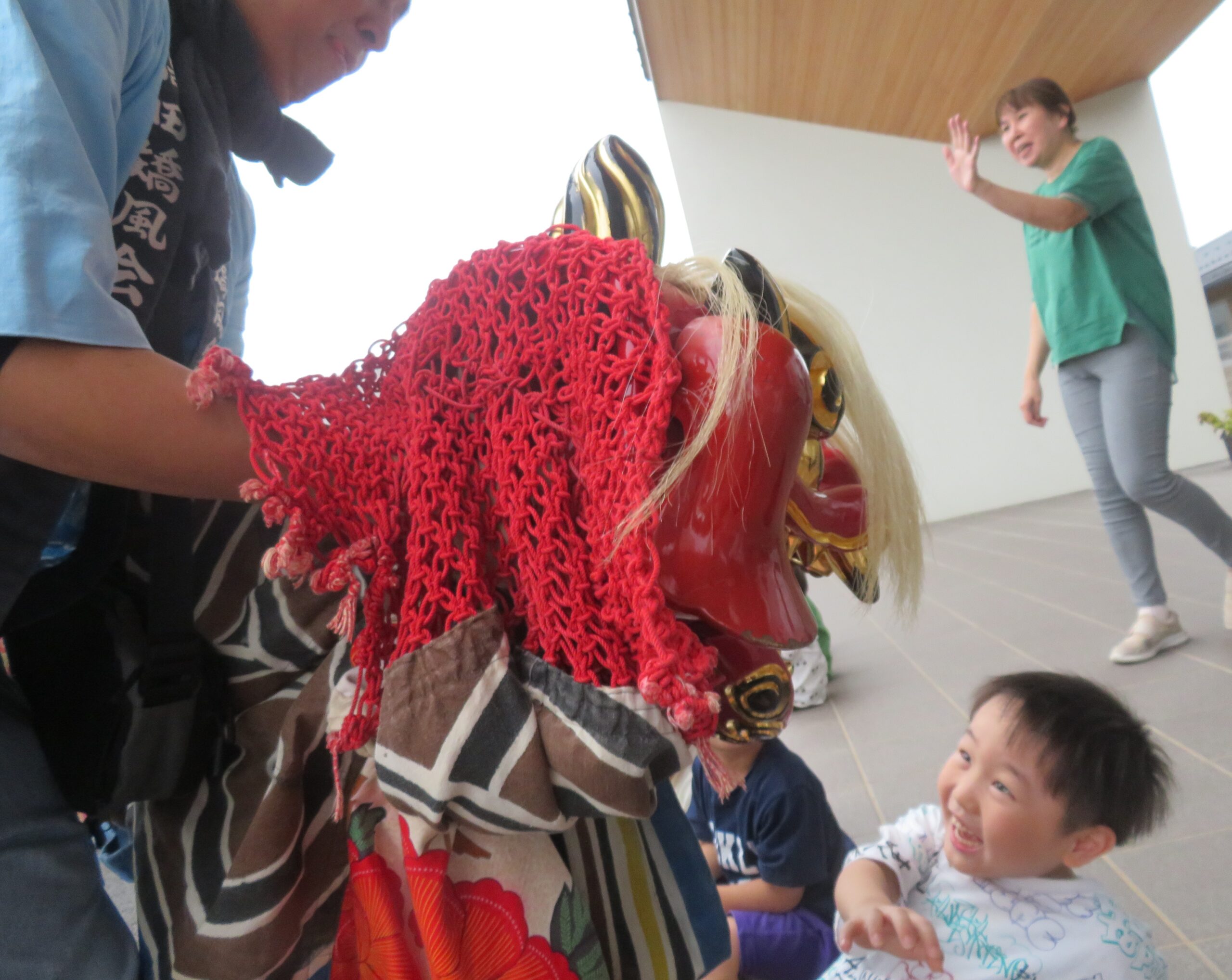 垣吉・高田町のお祭りの日、獅子舞が園に来てくれました!怖がる子、「お祭りだ!」と喜ぶ子など様々でした!